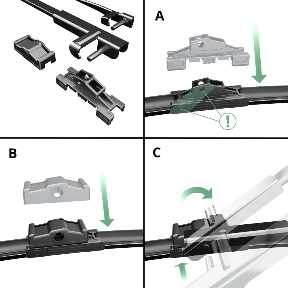 - adaptateurs (éléments utilisés pour relier le balai au bras d'essuie-glace): type type B .