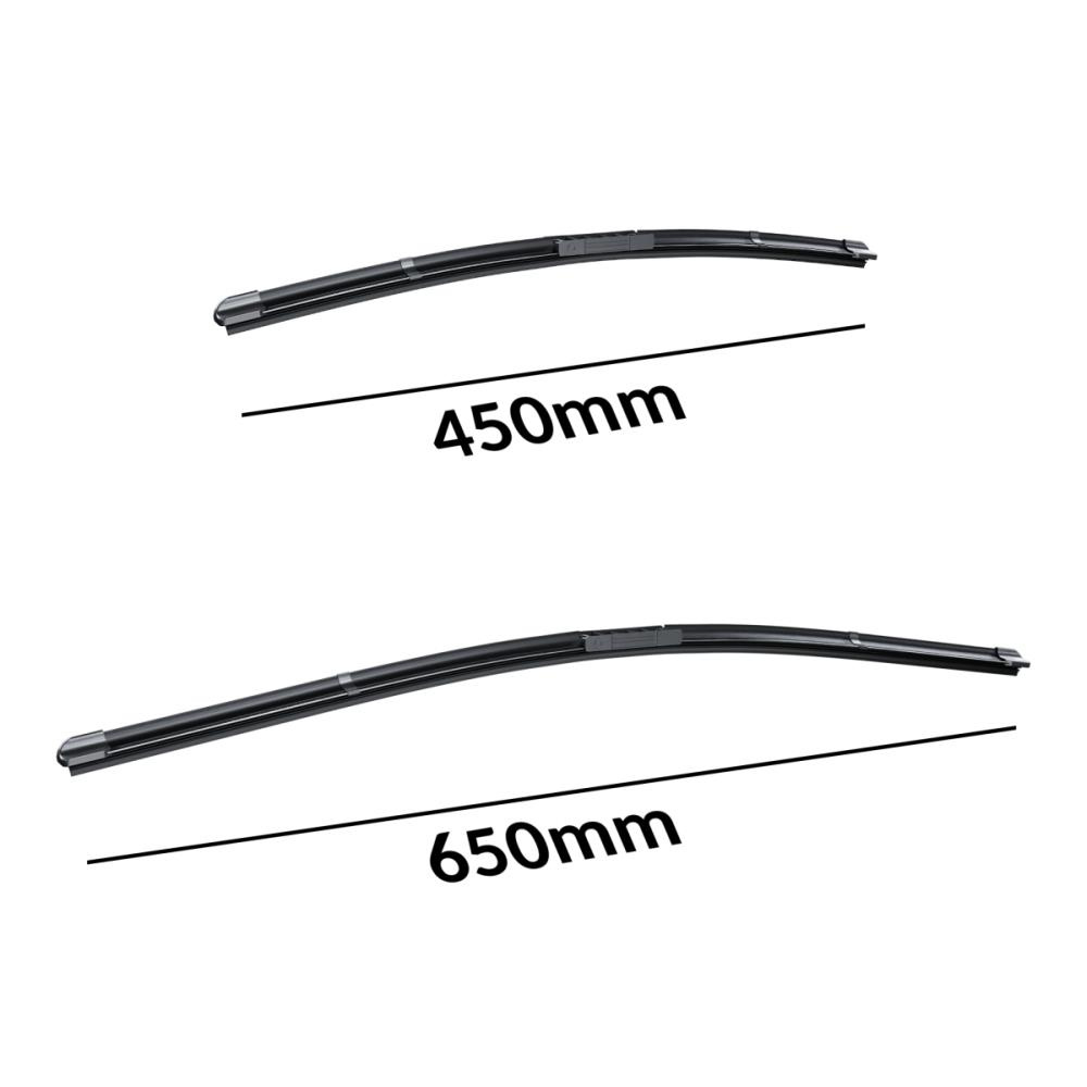 • Les balais plats n'ont pas de cadre métallique. Le revêtement en caoutchouc est placé directement dans les lames élastiques du balai et grâce à la forme appropriée, le balai a une faible résistance à l'air. Cette forme d'essuie-glace et l'absence de squelette métallique font que la lame entière adhère mieux au verre.