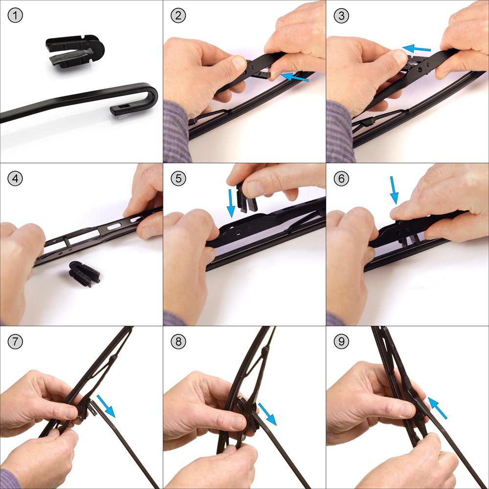 - adaptateurs (éléments utilisés pour relier le balai au bras d'essuie-glace): type M2 + M9 .