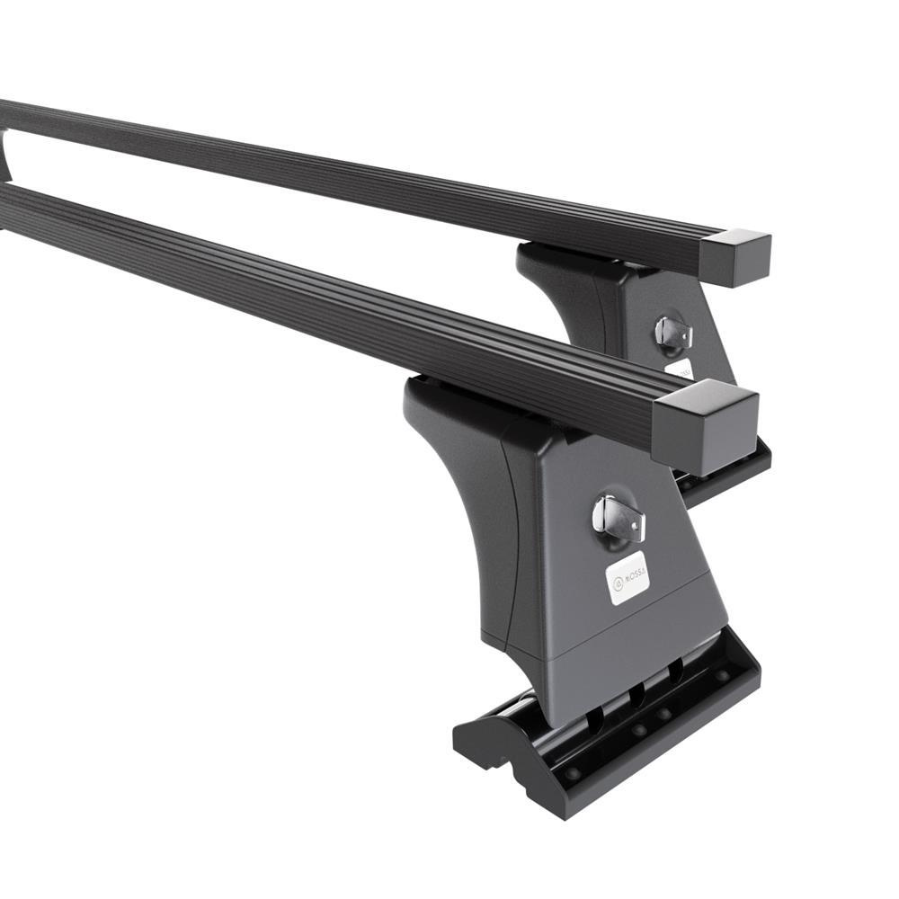 - Le kit de barres de toit se compose de 2 barres en acier solides ainsi que de 4 prises (appelé aussi patte), qui s’adaptent au type de toit ainsi qu’au modèle ou à la génération de la voiture sélectionnée.