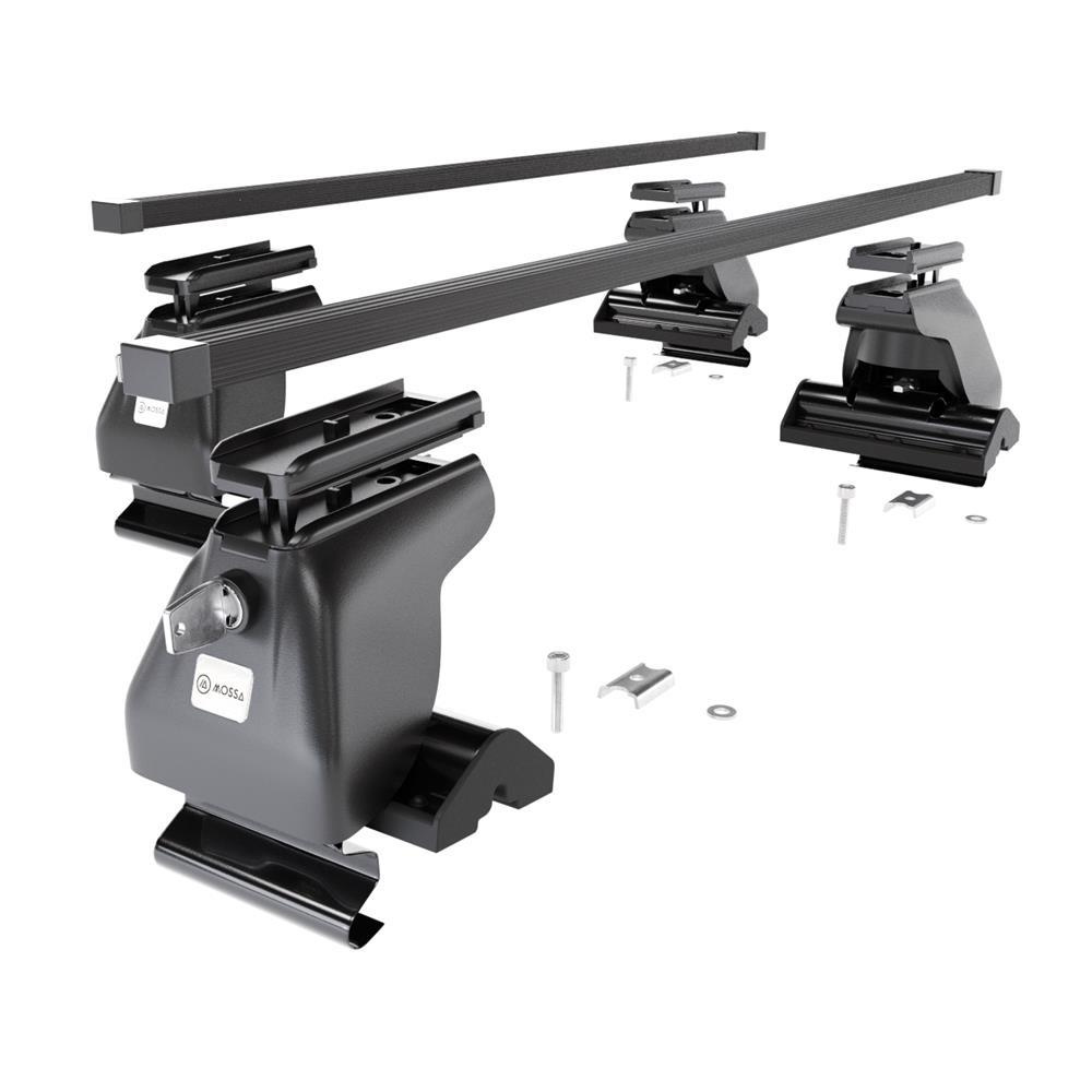 - Le kit de barres de toit se compose de 2 barres en acier solides ainsi que de 4 prises (appelé aussi patte), qui s’adaptent au type de toit ainsi qu’au modèle ou à la génération de la voiture sélectionnée.
