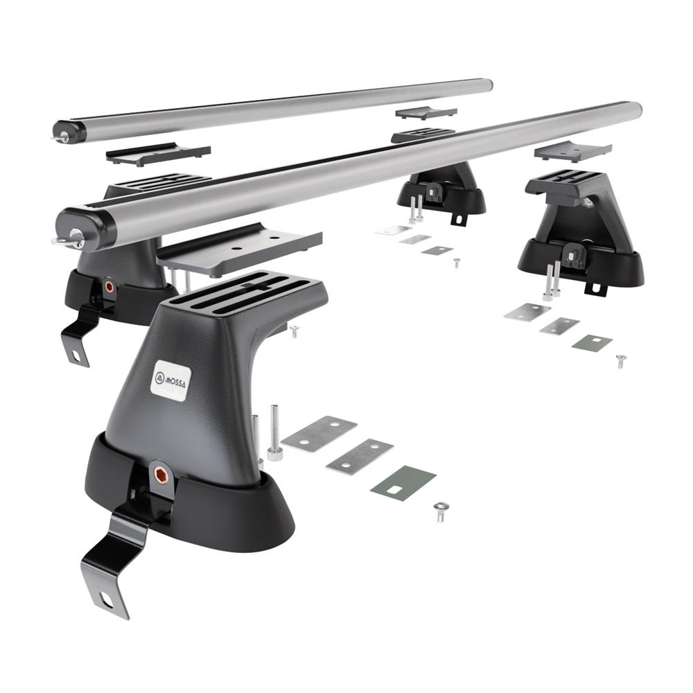 - Le kit de barres de toit se compose de 2 barres en aluminium solides ainsi que de 4 prises (appelé aussi patte), qui s’adaptent au type de toit ainsi qu’au modèle ou à la génération de la voiture sélectionnée.