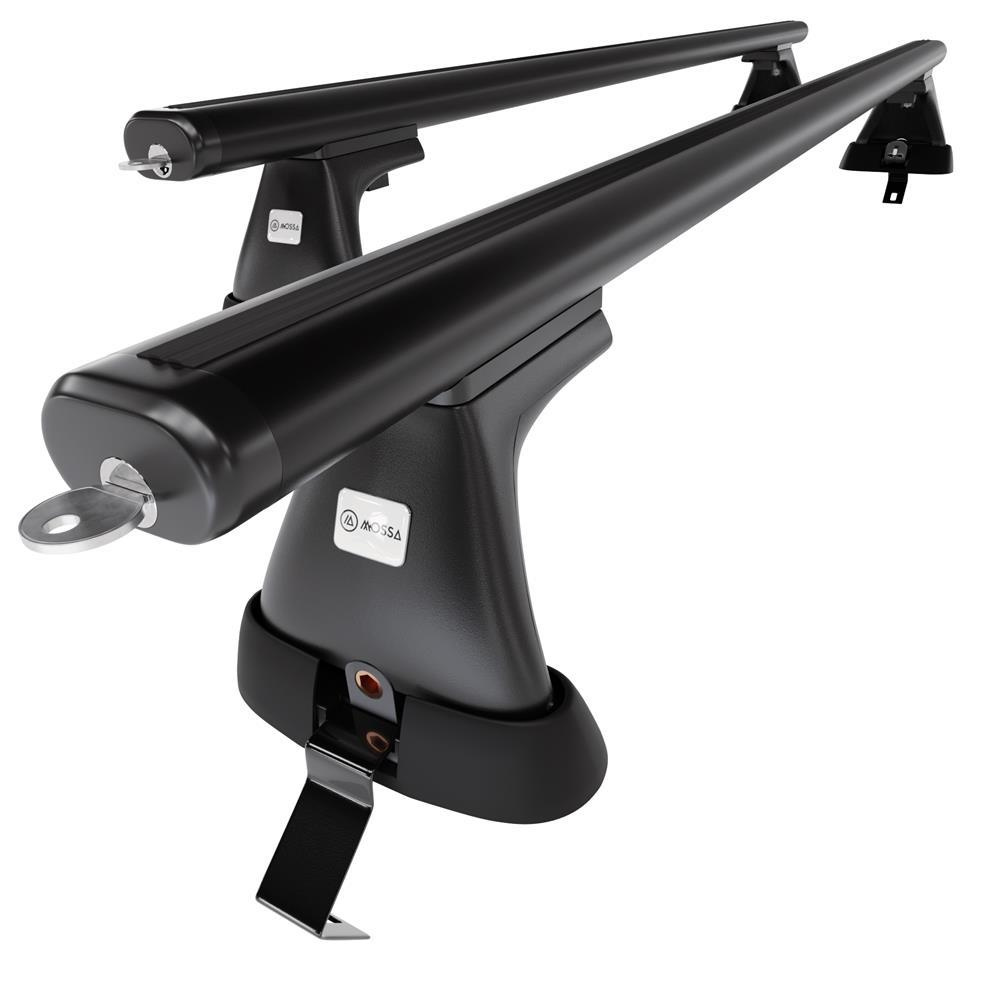 - Le kit de barres de toit se compose de 2 barres en aluminium solides ainsi que de 4 prises (appelé aussi patte), qui s’adaptent au type de toit ainsi qu’au modèle ou à la génération de la voiture sélectionnée.