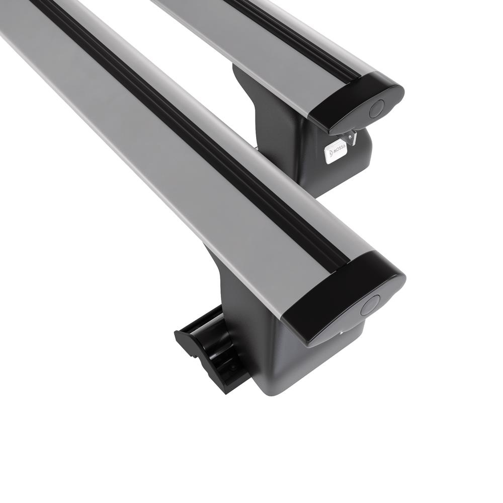 - Le kit de barres de toit se compose de 2 barres en aluminium solides ainsi que de 4 prises (appelé aussi patte), qui s’adaptent au type de toit ainsi qu’au modèle ou à la génération de la voiture sélectionnée.