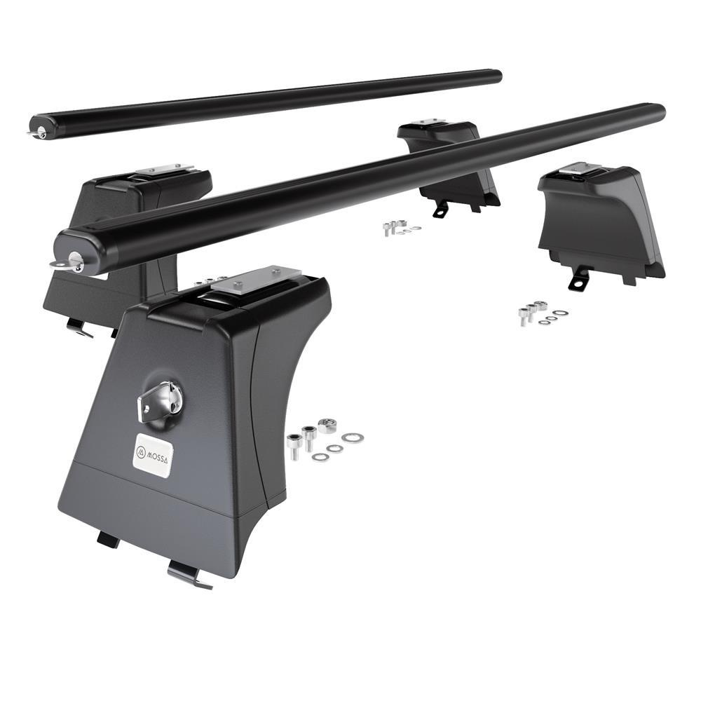 - Le kit de barres de toit se compose de 2 barres en aluminium solides ainsi que de 4 prises (appelé aussi patte), qui s’adaptent au type de toit ainsi qu’au modèle ou à la génération de la voiture sélectionnée.