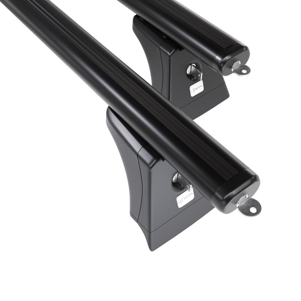 - Le kit de barres de toit se compose de 2 barres en aluminium solides ainsi que de 4 prises (appelé aussi patte), qui s’adaptent au type de toit ainsi qu’au modèle ou à la génération de la voiture sélectionnée.