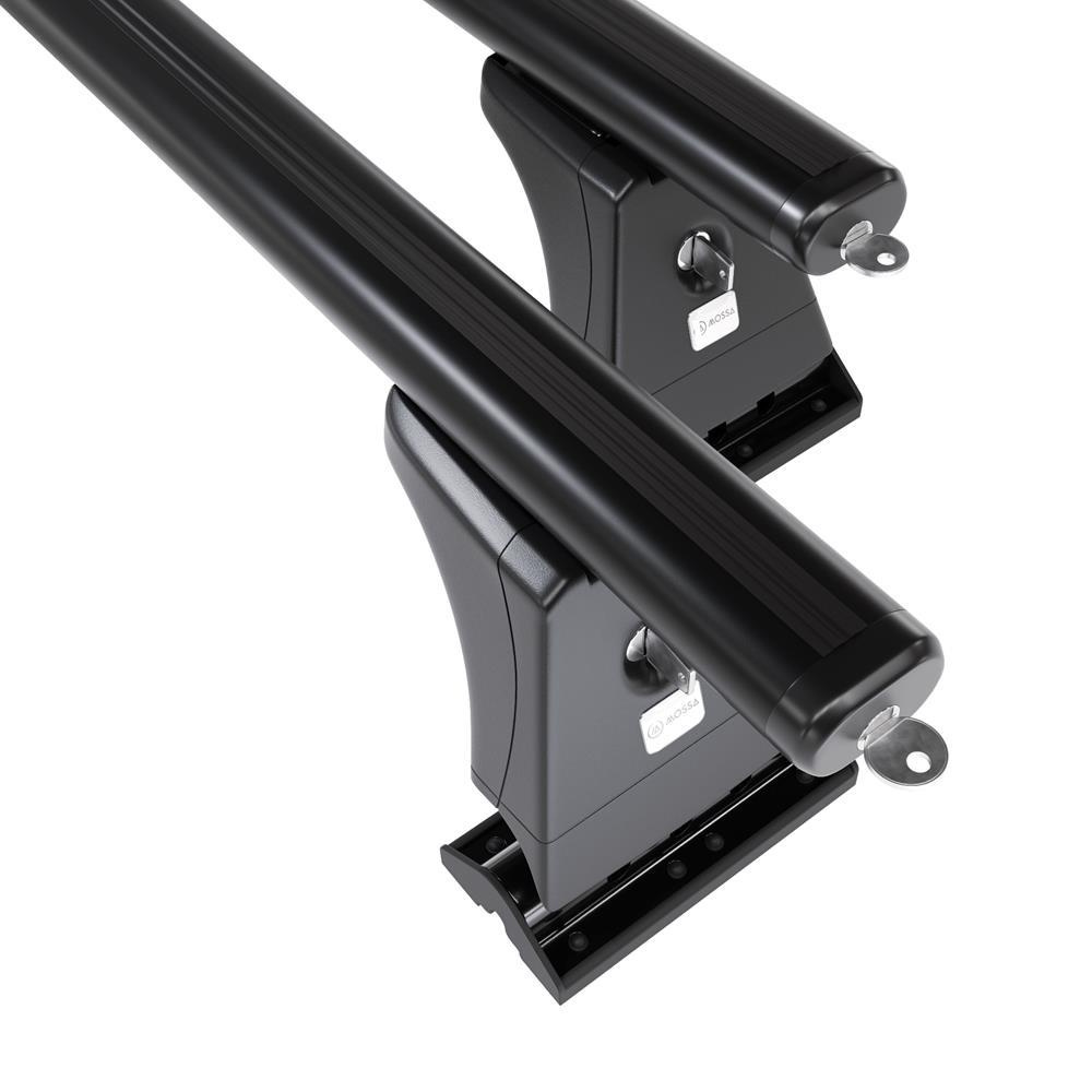 - Le kit de barres de toit se compose de 2 barres en aluminium solides ainsi que de 4 prises (appelé aussi patte), qui s’adaptent au type de toit ainsi qu’au modèle ou à la génération de la voiture sélectionnée.