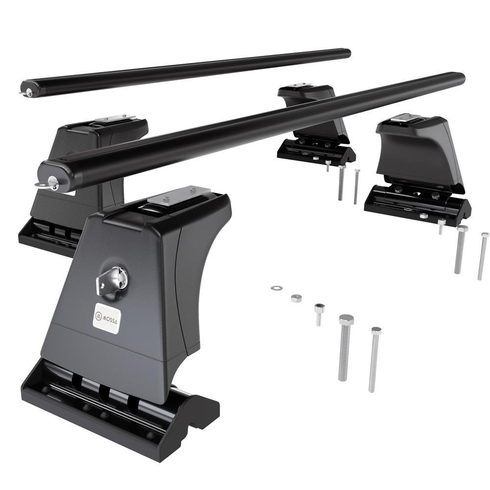 - Le kit de barres de toit se compose de 2 barres en aluminium solides ainsi que de 4 prises (appelé aussi patte), qui s’adaptent au type de toit ainsi qu’au modèle ou à la génération de la voiture sélectionnée.