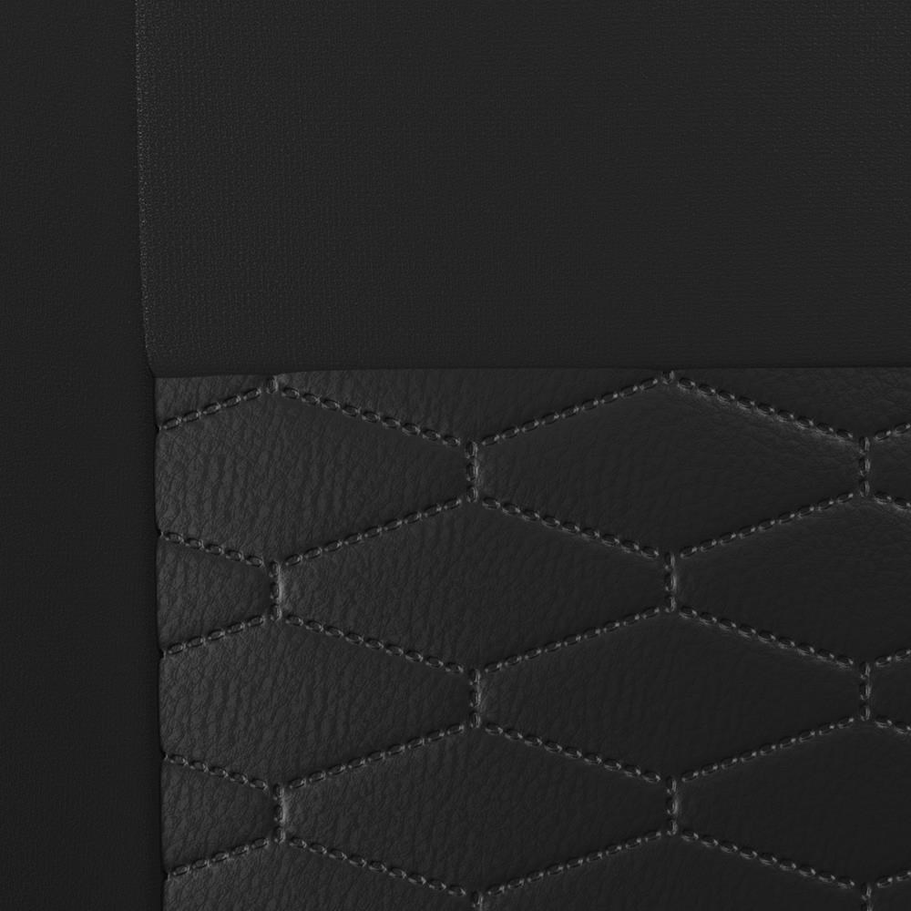- Les housses sont faites de cuir artificiel matelassé de haute qualité dans la partie centrale et de matériaux de revêtement de haute qualité dans les parties latérales.