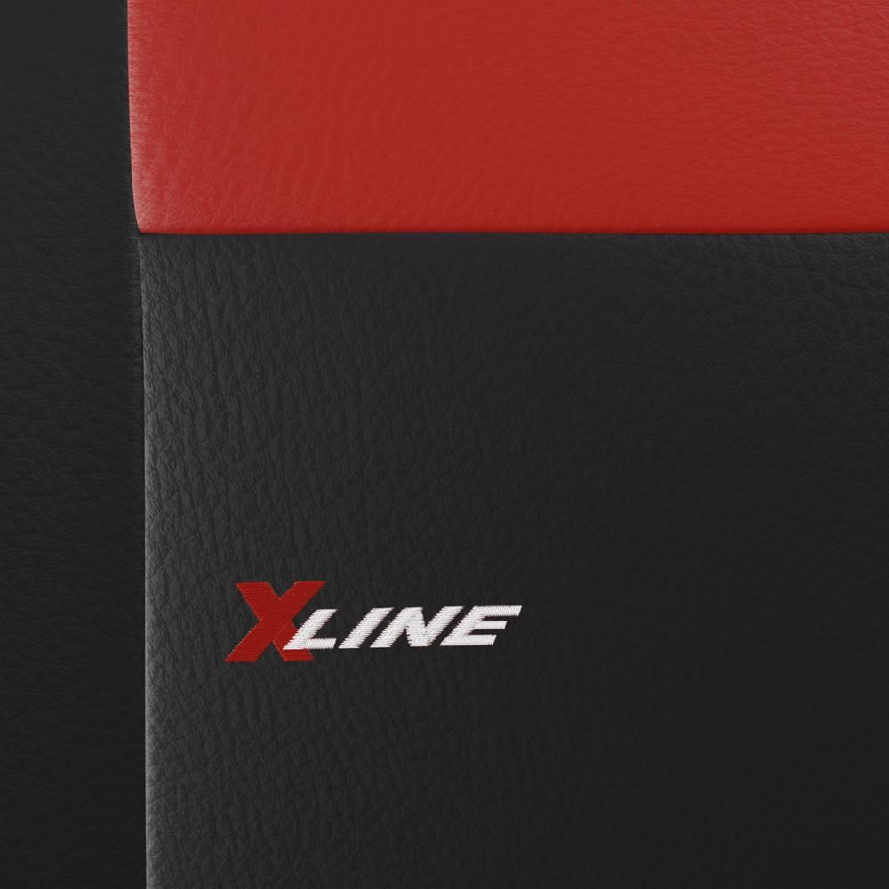 - Les housses de siège avant sont décorées de broderies délicates, faisant référence à la couleur de l'ensemble.