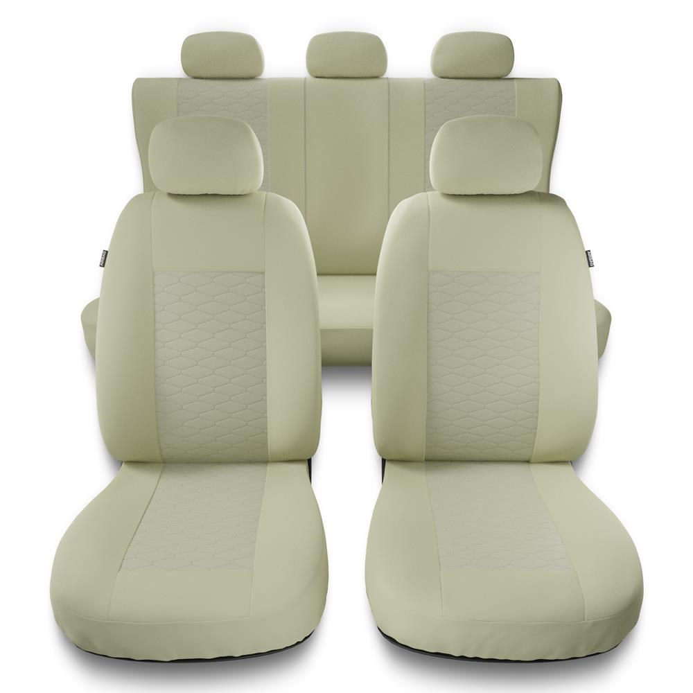 - Les housses sont faites de cuir artificiel matelassé de haute qualité dans la partie centrale et de matériaux de revêtement de haute qualité dans les parties latérales.
