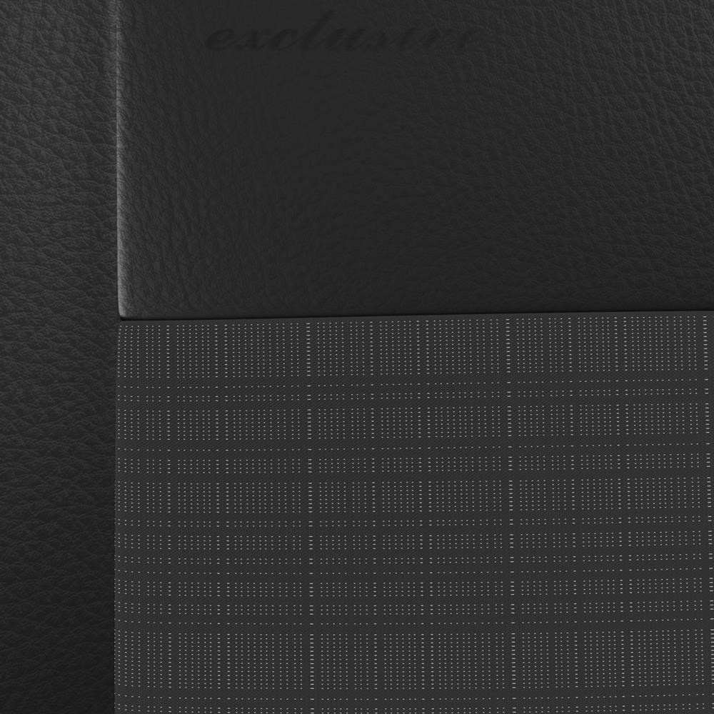 - Les housses sont faites de cuir artificiel de haute qualité dans la partie latérale et de tissus de revêtement de la plus haute qualité dans leur partie centrale.