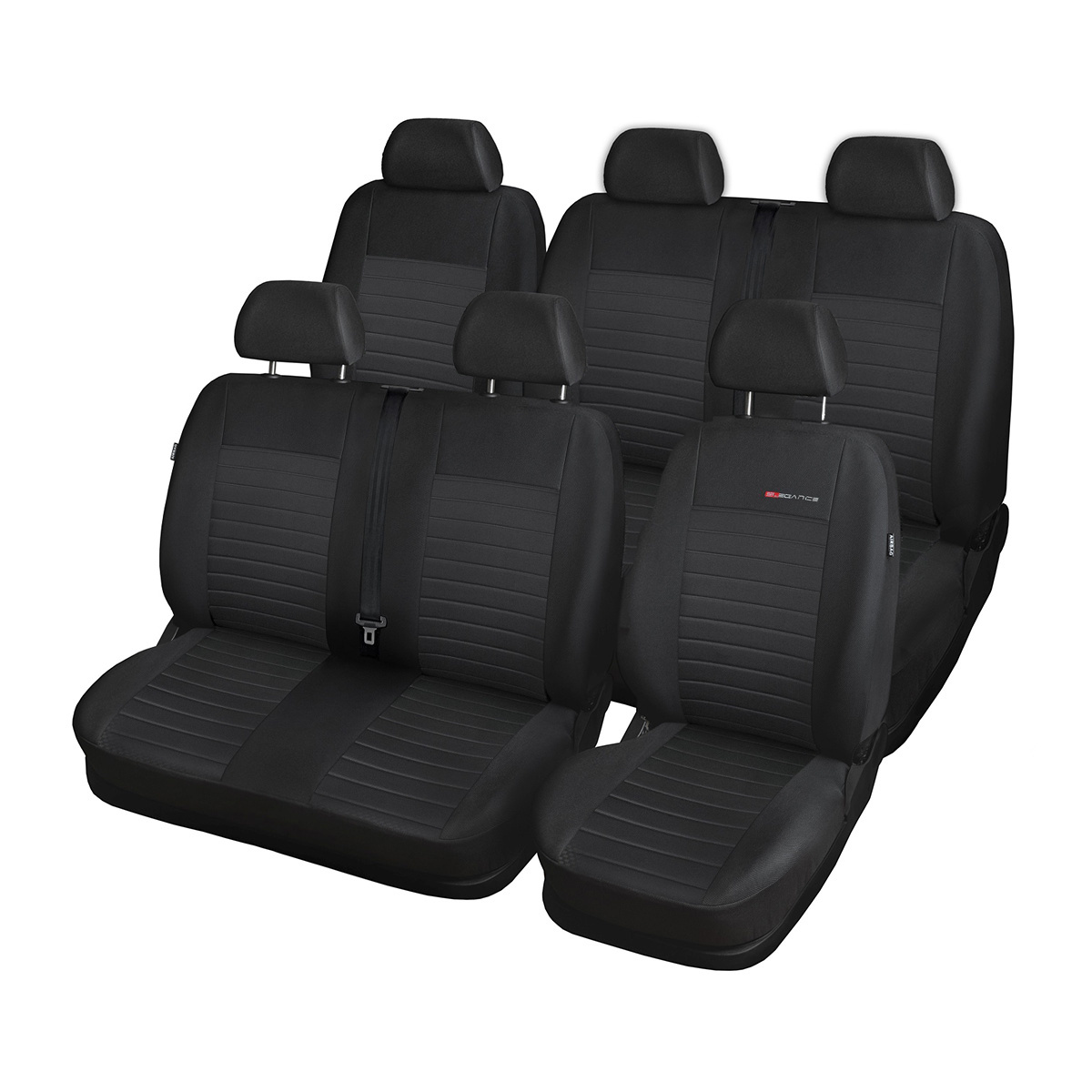 Housses de siège sur mesure adaptées pour Volkswagen Transporter T5 Van (2003-2015) sur deux rangées de sièges (banquette arrière divisée) - housse siege voiture - couverture siege - E4