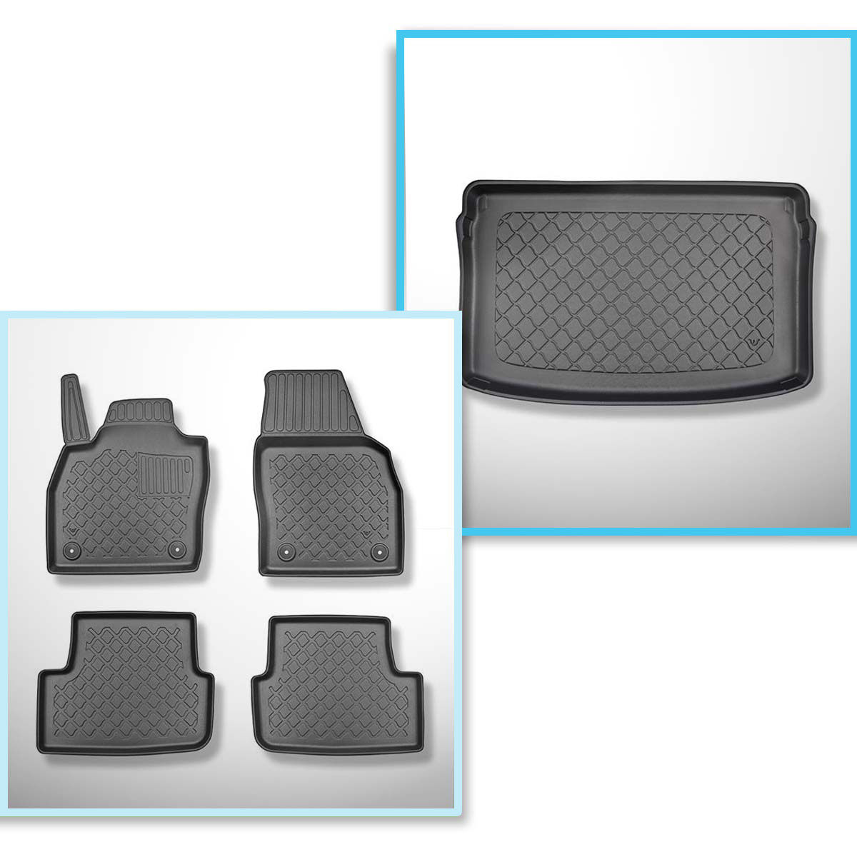 Kit tapis de coffre et tapis de voiture TPE pour: Audi A1 VI Sportback (07.2018-2024) - coffre supérieur; plancher amovible en la position la plus haute