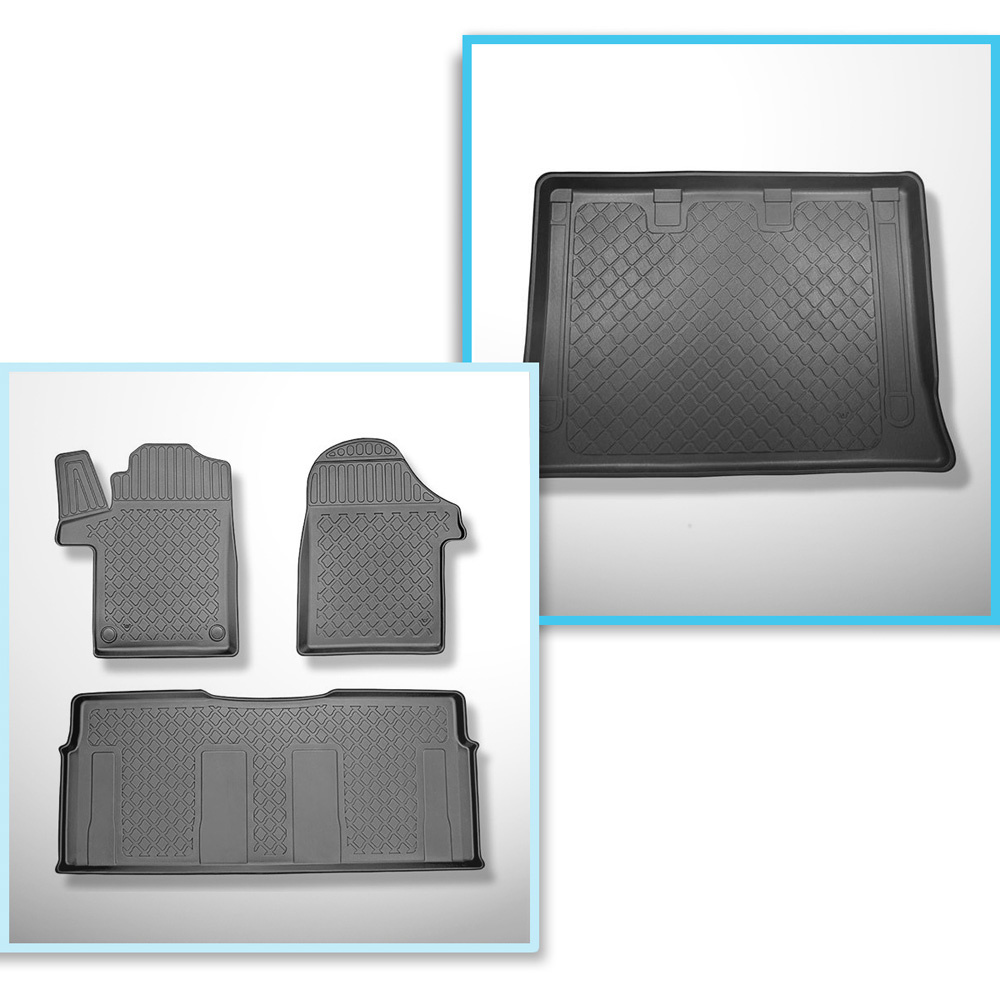 Kit tapis de coffre et tapis de voiture TPE pour: Mercedes-Benz Classe V W447 Van (10.2014-....) - version Extra longue (Extra Long) (empattement 3430 mm, longueur du véhicule 5370 mm);sans séparation de l'espace bagage;sans 3ème rangée