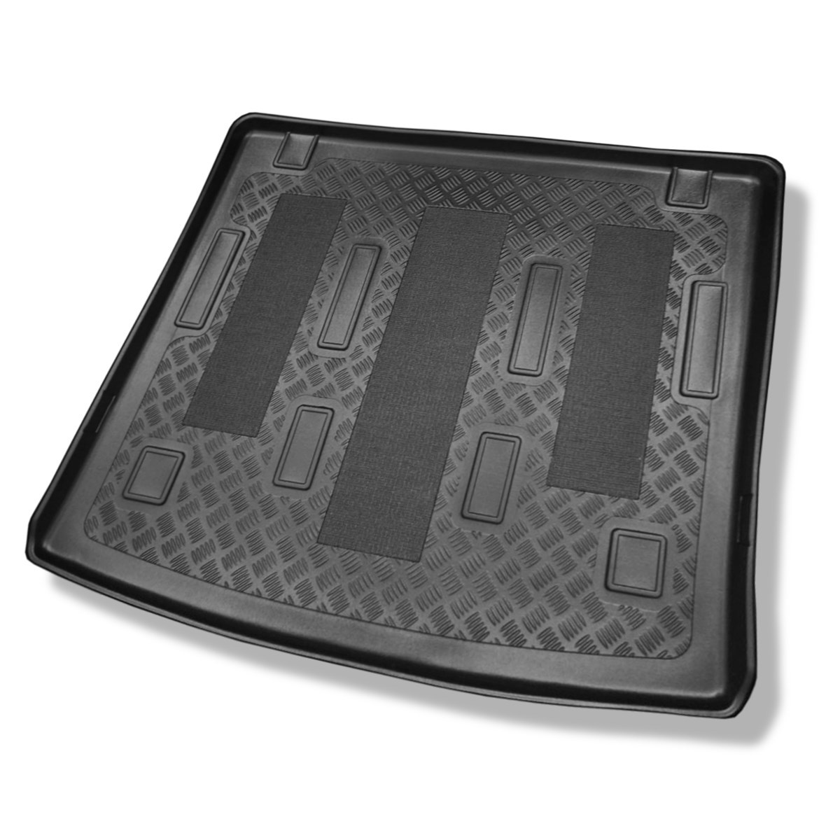 - ajustement parfait basé sur les mesures laser du coffre à bagages. Thermoplastique de haute qualité PE avec une résistance et une flexibilité exceptionnelles. Dans la partie centrale du tapis de coffre se trouve un insert antidérapant.