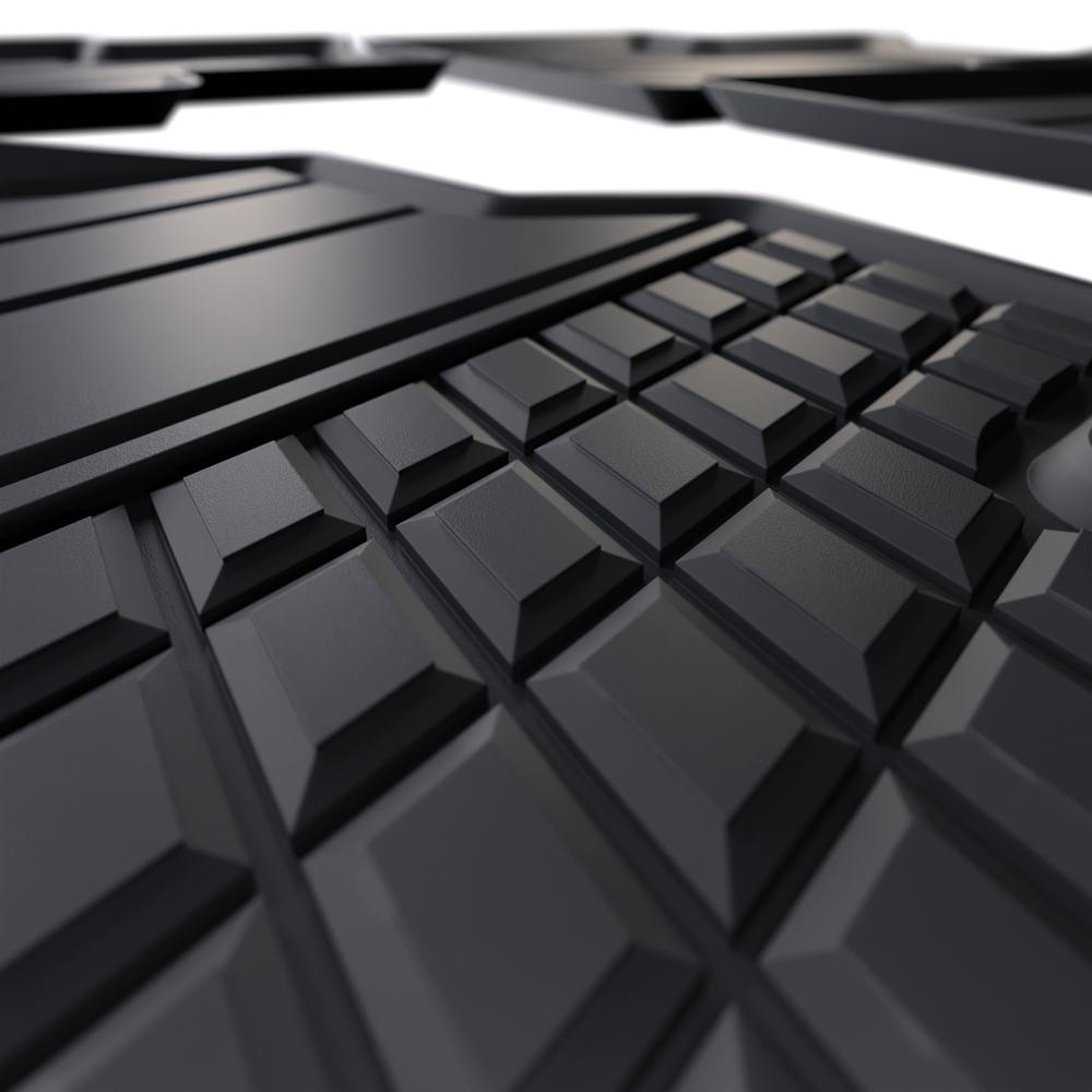- Les tapis de voiture sont fabriqués dans un matériau TPE spécial, résistant aux températures élevées et basses, aux huiles et aux produits chimiques. Les tapis sont antidérapants, extrêmement durables et ont un rebord haut qui maintient parfaitement la saleté à l'intérieur du tapis.