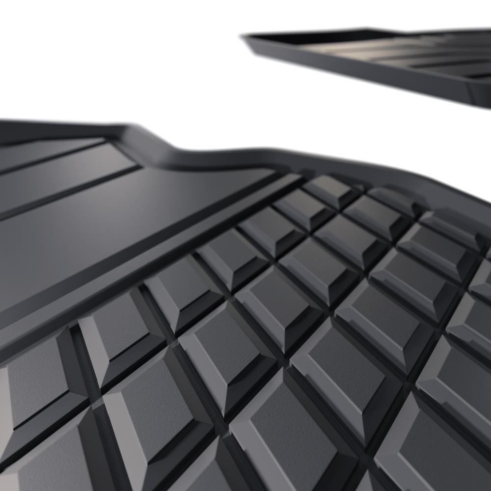 - Un ajustement parfait au sol et les fixations utilisées en fonction du modèle de voiture empêchent les tapis de bouger pendant la conduite. La production de tapis est réalisée selon les normes de qualité les plus élevées, et les matériaux utilisés pour leur production sont sans danger pour la santé et sont recyclables. Les tapis sont imperméables et faciles à nettoyer (ils peuvent être nettoyés à l'eau courante, également avec un nettoyeur haute pression).