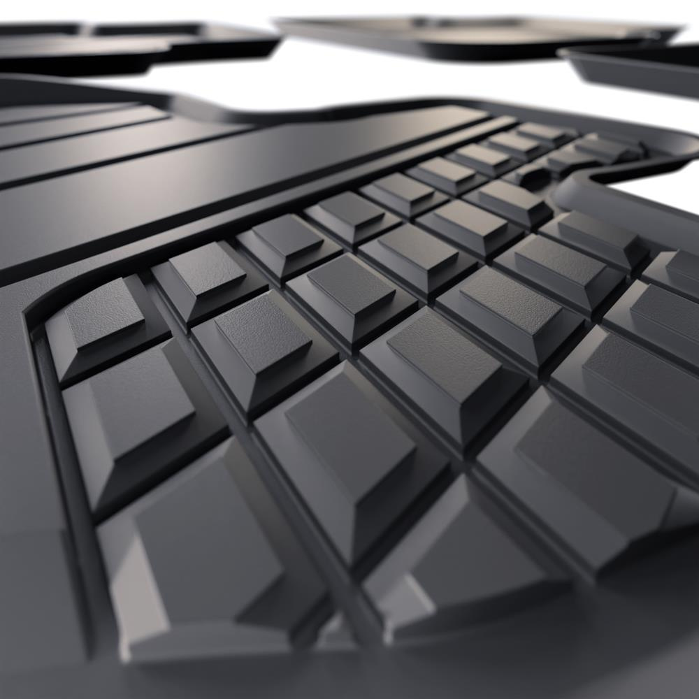 - Les tapis de voiture sont fabriqués dans un matériau TPE spécial, résistant aux températures élevées et basses, aux huiles et aux produits chimiques. Les tapis sont antidérapants, extrêmement durables et ont un rebord haut qui maintient parfaitement la saleté à l'intérieur du tapis.
